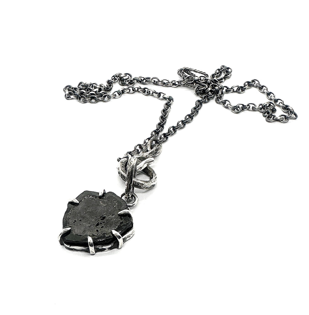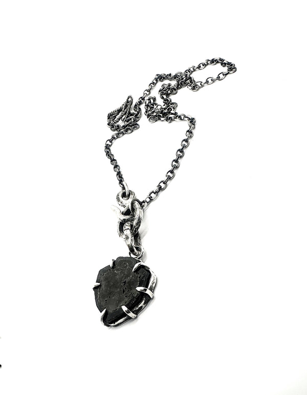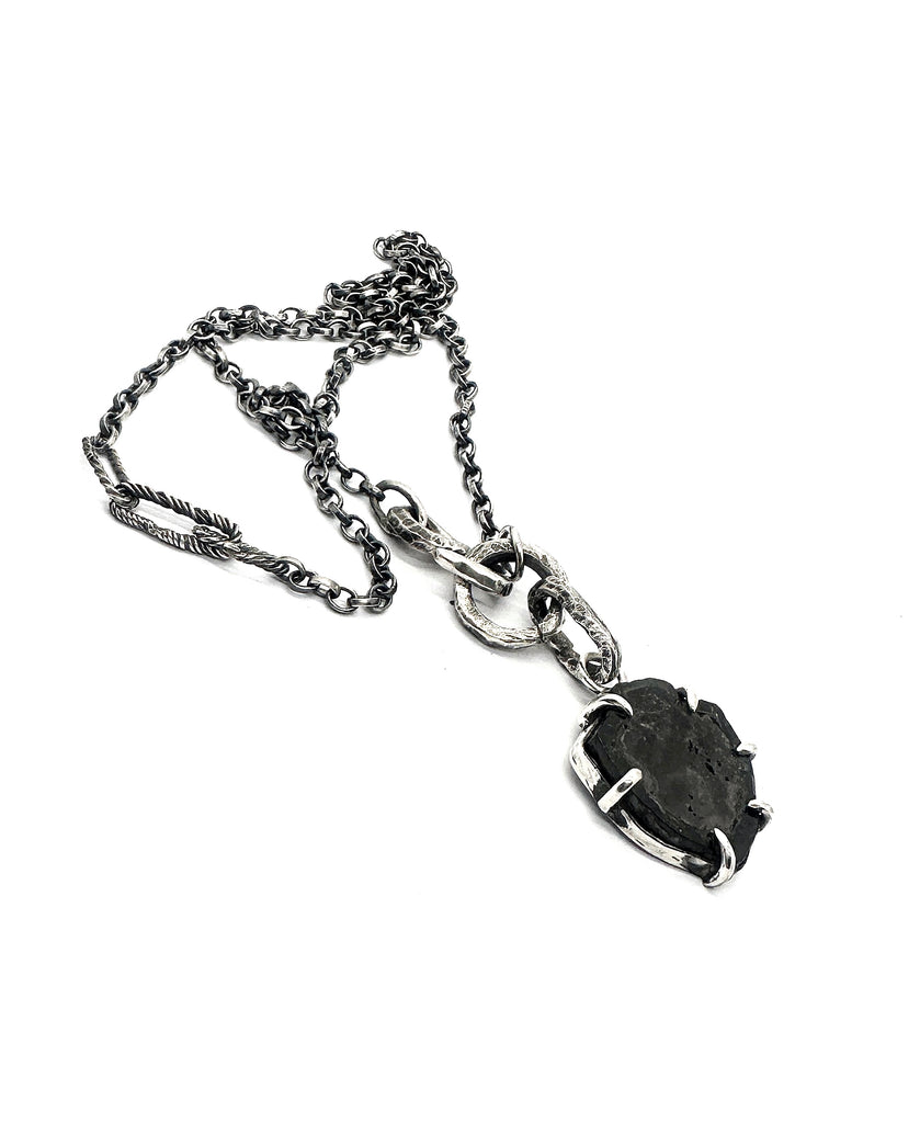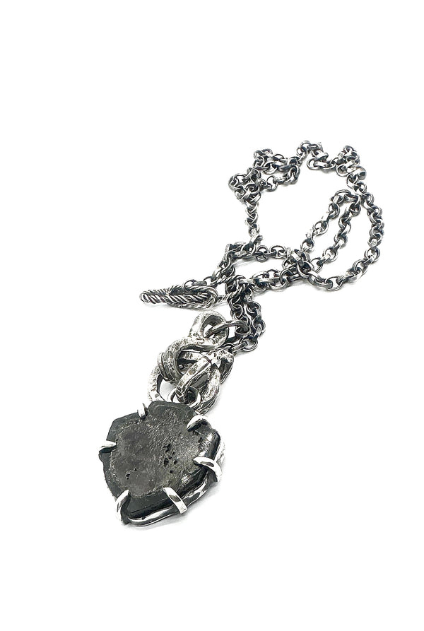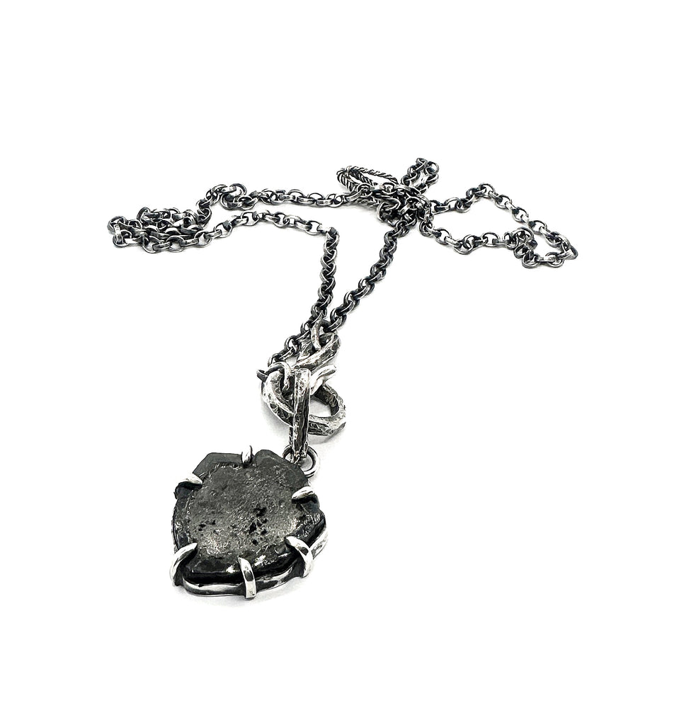 Industrial and avant-garde, this pendant balances fragility and force in equal measure.