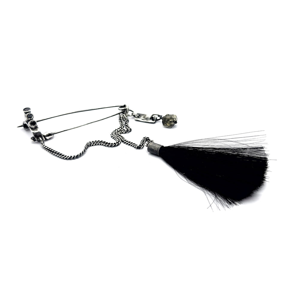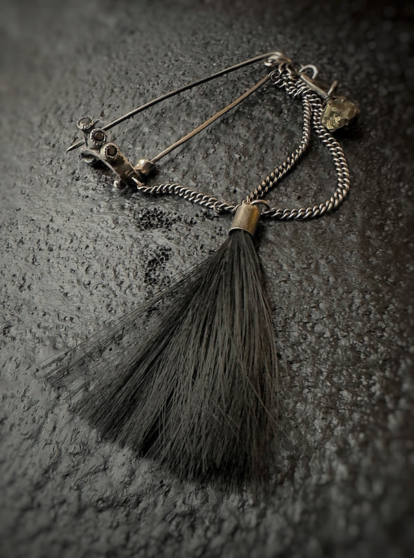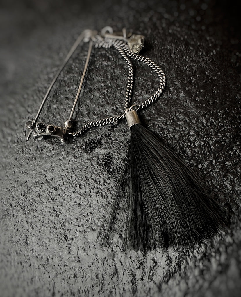 A horse-tail tassel whispers of motion, instinct, and raw energy.