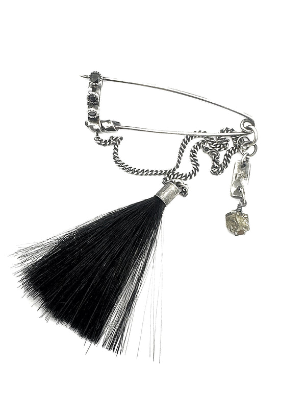 A symbol of protection and defiance, this silver safety pin brooch transcends fragility.